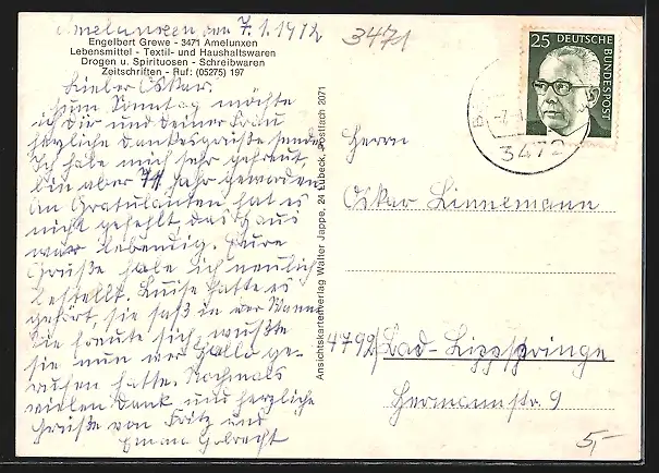 alte Ansichtskarte, gelaufen 1972, guter Zustand