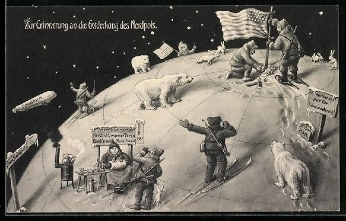 AK Amerikaner bei der Entdeckung des Nordpols, Zeppelin im Flug