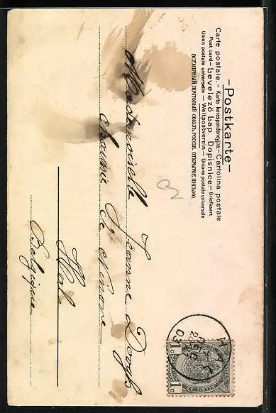 alte Ansichtskarte, gelaufen 1903, Bugspur li. mittig, guter Zustand