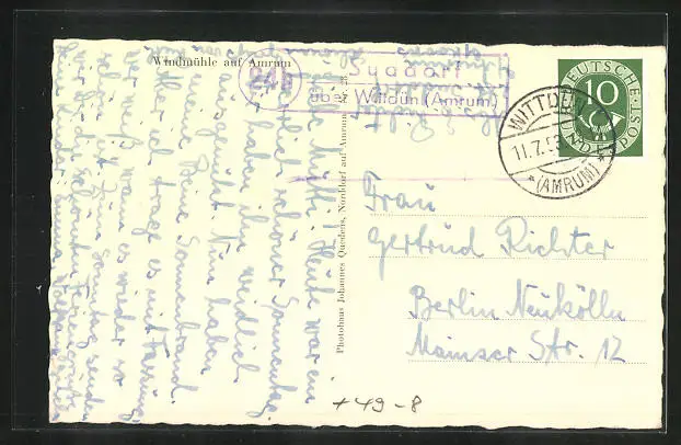 AK Amrum, Windmühle mit Pferd am Abend