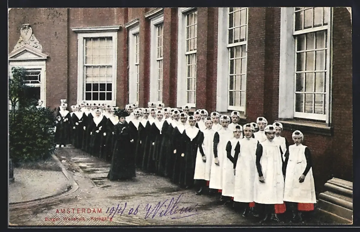 AK Amsterdam, Burger Weeshuis, Kerkgang der Mädchen