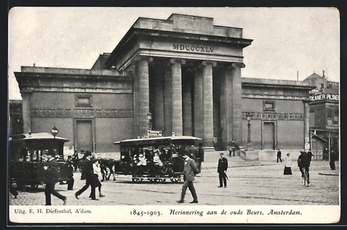 AK Amsterdam, Herinnering aan de oude Beurs, Pferdebahn