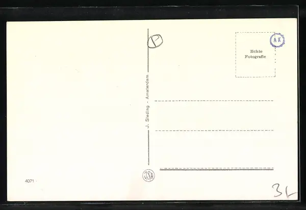 Personenbezogene Daten auf der Rückseite der Karte wurden durch blauen Textmarker unkenntlich gemacht. Die blauen Stellen sind auf die Vorderseite durchgeweicht und wirken sich negativ auf das Postkartenfoto aus