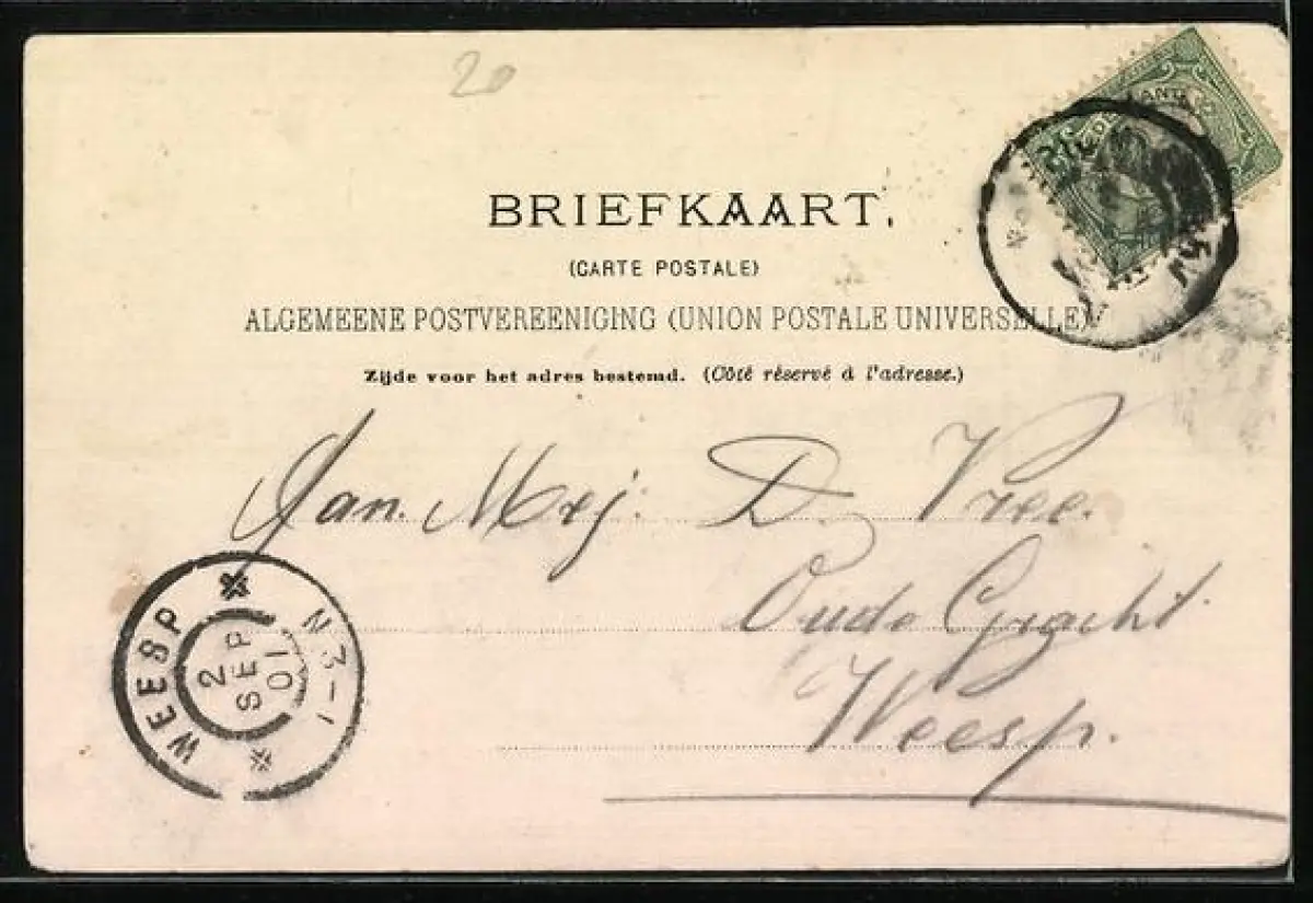 alte Ansichtskarte, gelaufen 1901, Stempelspur, kleiner Einriss oben mitte, guter Zustand