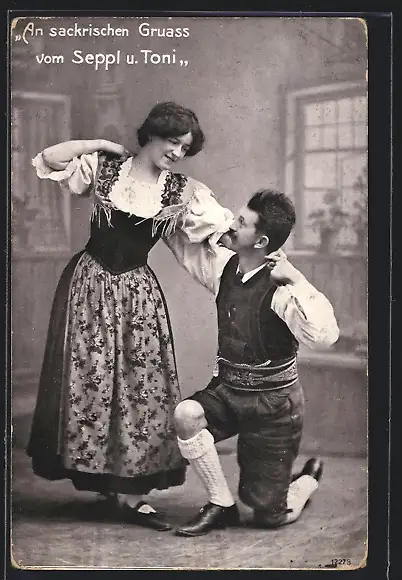 AK An sackrischen Gruass vom Sepp`l und Toni, Volkstanz
