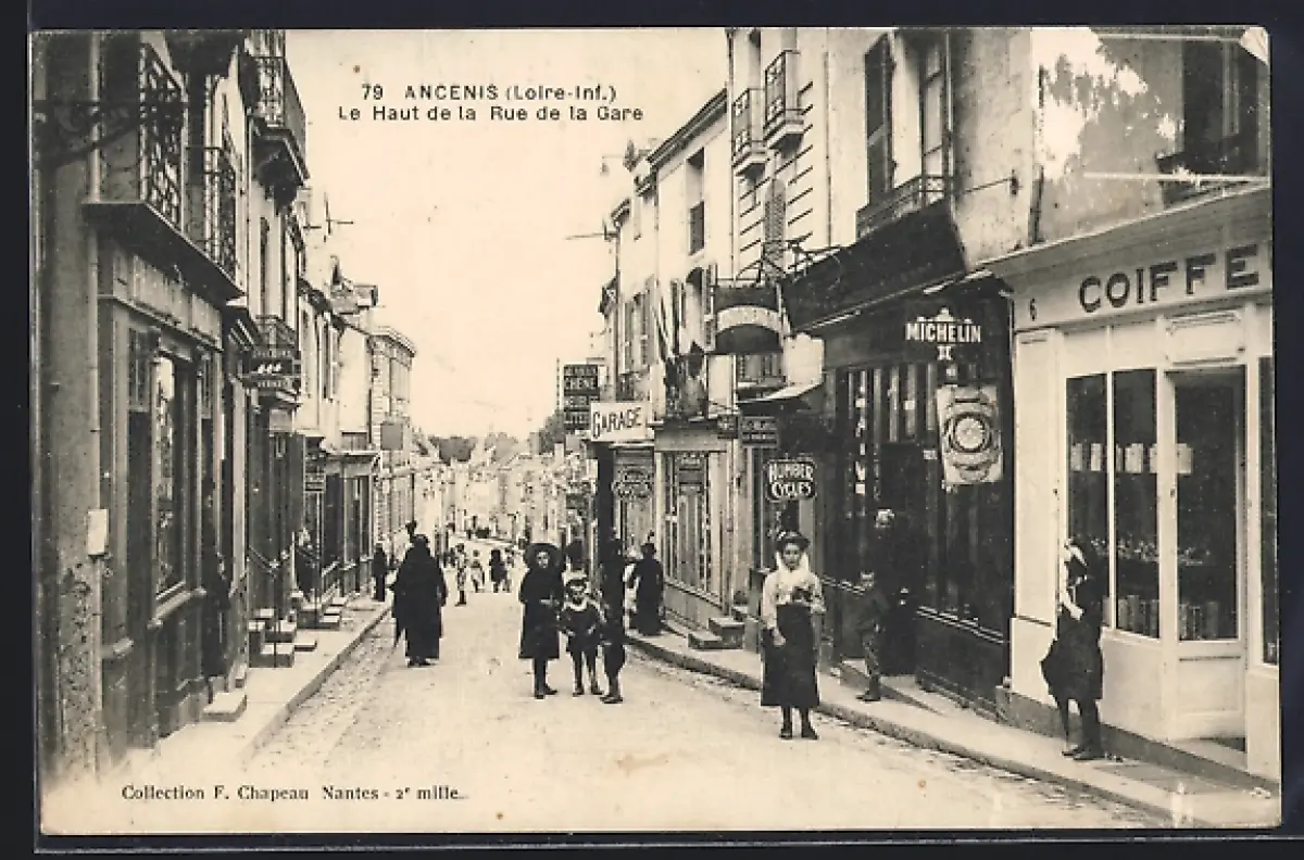AK Ancenis /Loire-Inf., Le Haut de la Rue de la Gare avec passants et commerces
