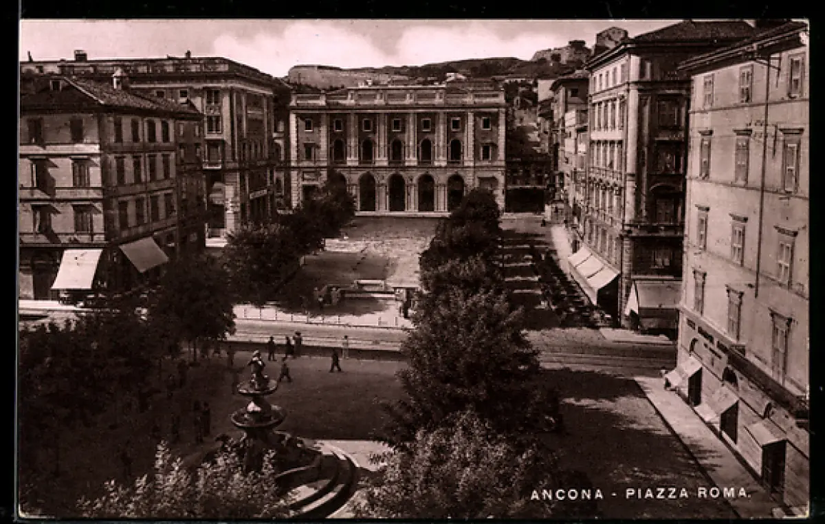 AK Ancona, Piazza Roma con fontana e edifici storici