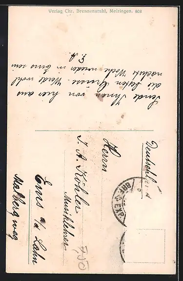 alte Ansichtskarte, gelaufen, Briefmarke entfernt, rückseitig Oberflächenschaden, guter Zustand