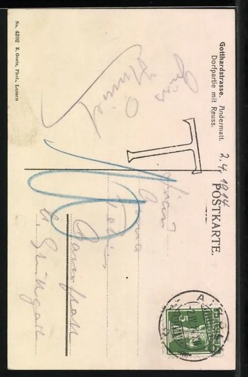 AK Andermatt, Gotthardstrasse, Dorfpartie mit Reuss