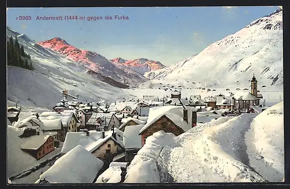 AK Andermatt, Ortspanorama mit Furka im Winter