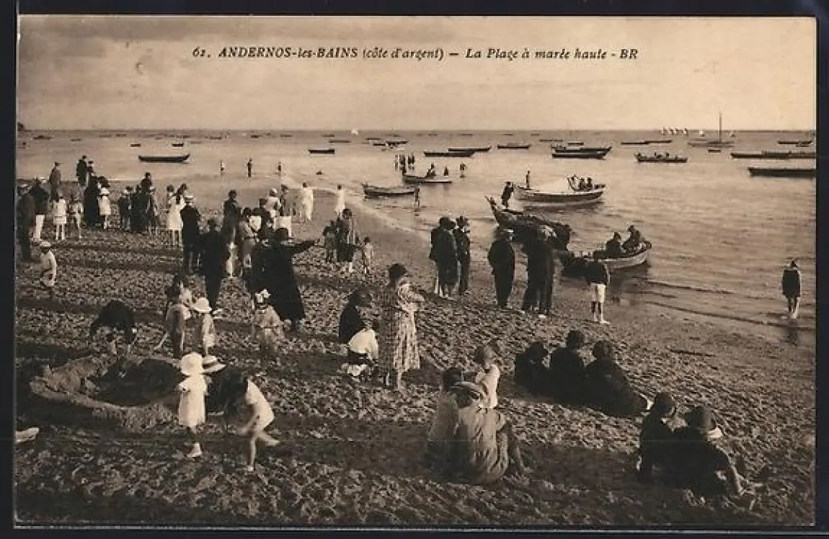 AK Andernos-les-Bains, La Plage à marée haute avec baigneurs et bateaux