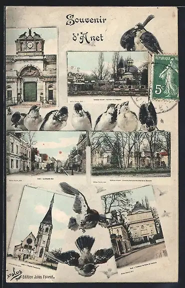 AK Anet, Souvenirs avec vues multiples et oiseaux