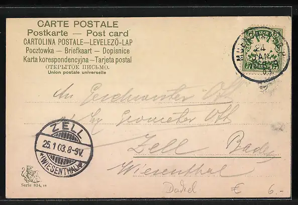alte Ansichtskarte, gelaufen 1903, guter Zustand