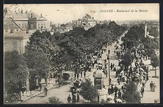 AK Angers, Boulevard de la Mairie animé avec foule et véhicules