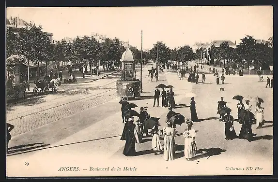 AK Angers, Boulevard de la Mairie avec promeneurs élégants