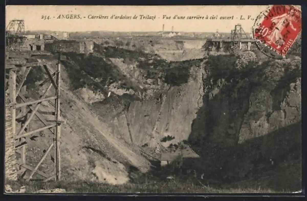 AK Angers, Carrières d`ardoise de Trélazé, Vue d`une carrière à ciel ouvert