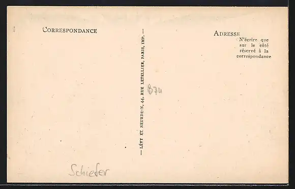 Personenbezogene Daten auf der Rückseite der Karte wurden durch blauen Textmarker unkenntlich gemacht. Die blauen Stellen sind auf die Vorderseite durchgeweicht und wirken sich negativ auf das Postkartenfoto aus