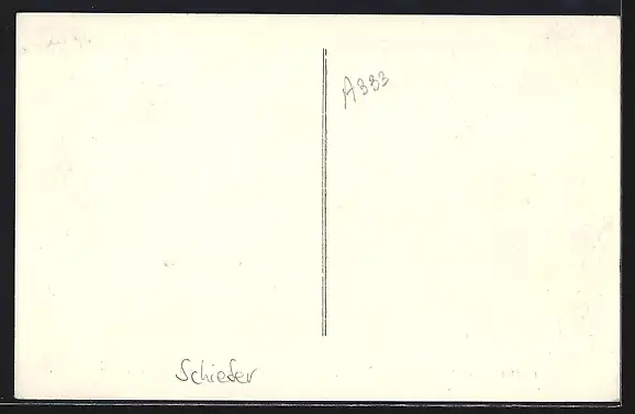 Personenbezogene Daten auf der Rückseite der Karte wurden durch blauen Textmarker unkenntlich gemacht. Die blauen Stellen sind auf die Vorderseite durchgeweicht und wirken sich negativ auf das Postkartenfoto aus