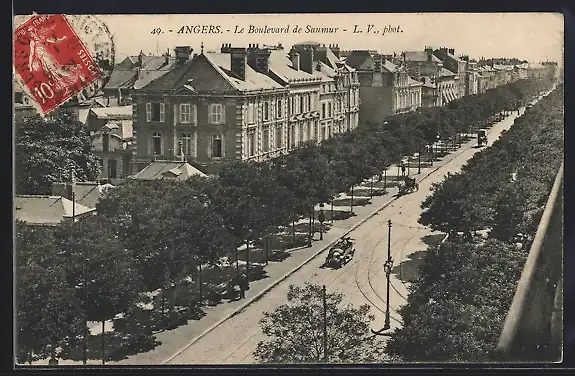 AK Angers, Le Boulevard de Saumur avec voitures et arbres alignés