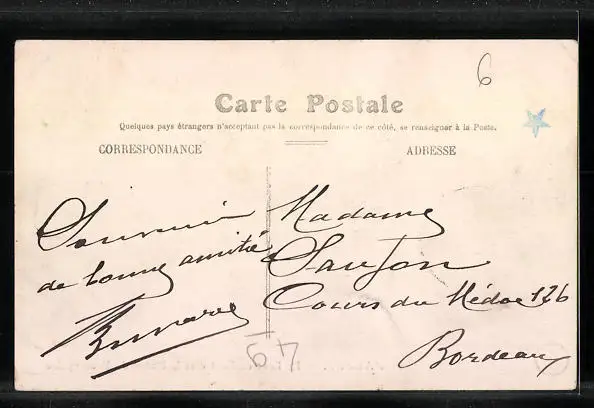 alte Ansichtskarte, gelaufen, Briefmarke entfernt, Oberflächenschaden, guter Zustand