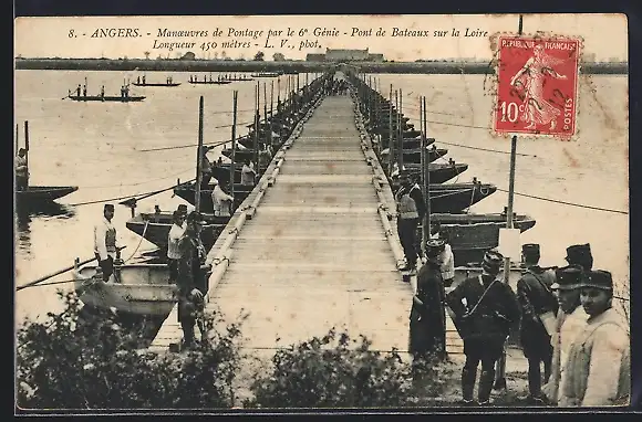 AK Angers, Manoeuvres de Pontage par le 6. Génie, Pont de Bateaux sur la Loire