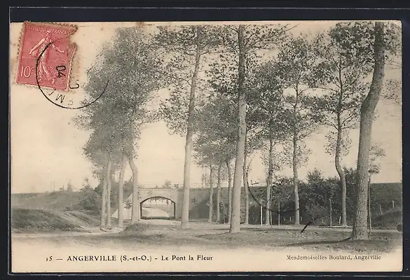 AK Angerville, Le Pont la Fleur et les arbres environnants
