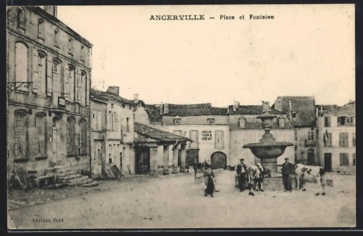 AK Angerville, Place et Fontaine