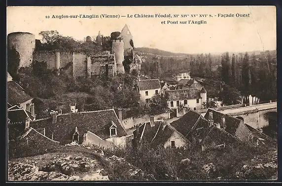 AK Angles-sur-l`Anglin, Le Château Féodal et Pont sur l`Anglin, Facade Ouest