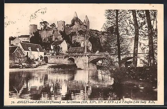 AK Angles-sur-l`Anglin, Le Château, XI?, XIV?, XV? et XVI? s., et l`Anglin, côté Sud