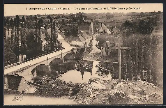 AK Angles-sur-l`Anglin, Le pont sur l`Anglin et la Ville Basse, côté Nord