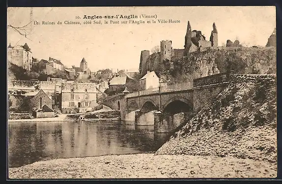 AK Angles-sur-l`Anglin, Ruines du Château et Pont sur l`Anglin côté Sud