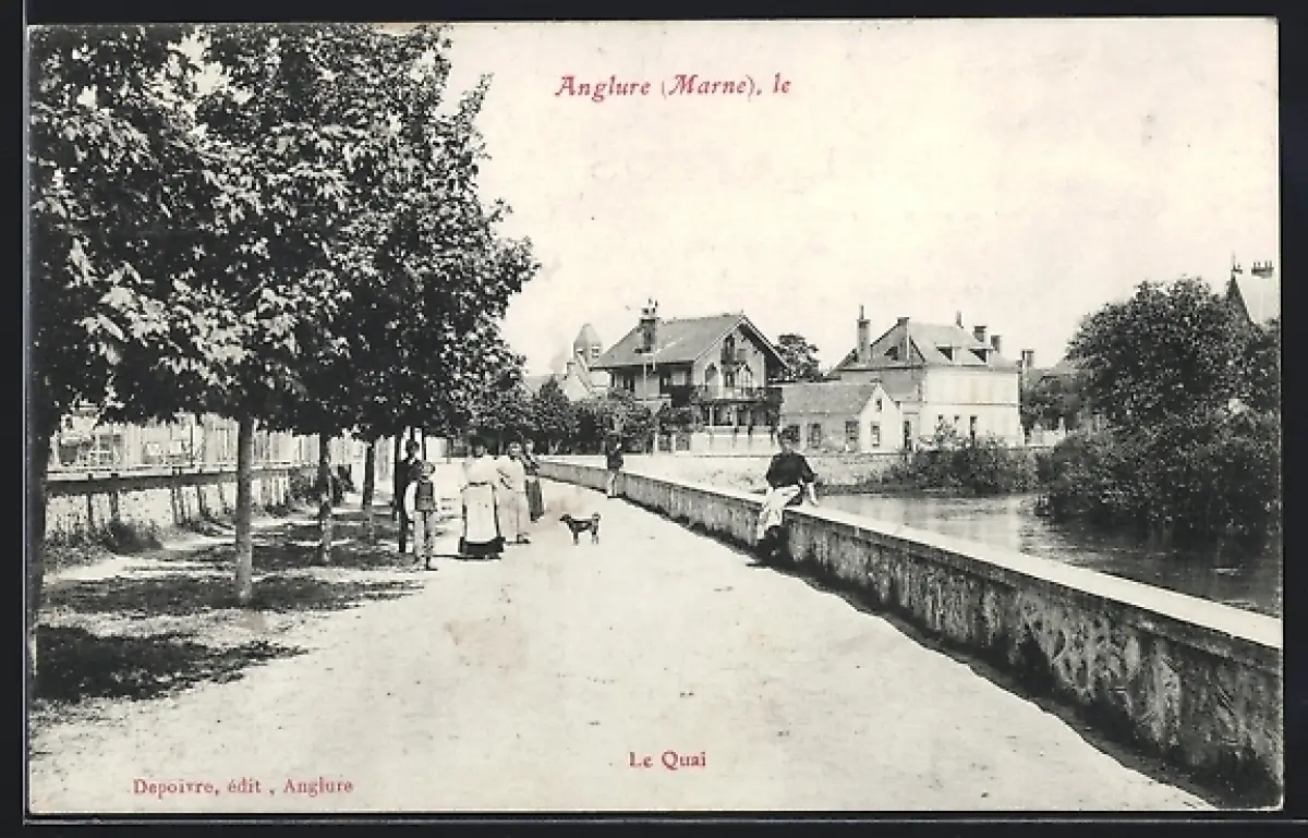 AK Anglure /Marne, Le Quai avec passants et rivière adjacente