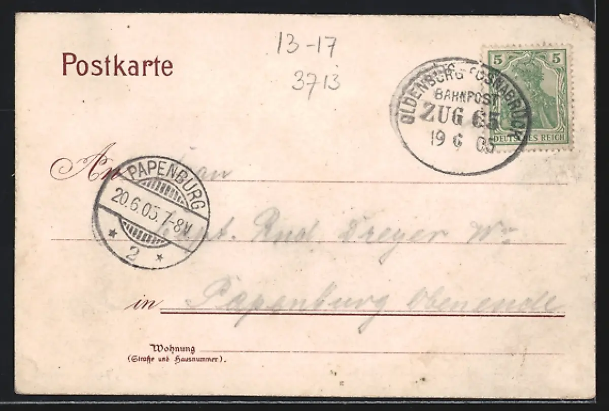 alte Ansichtskarte, gelaufen 1905, Eckschaden li. oben
