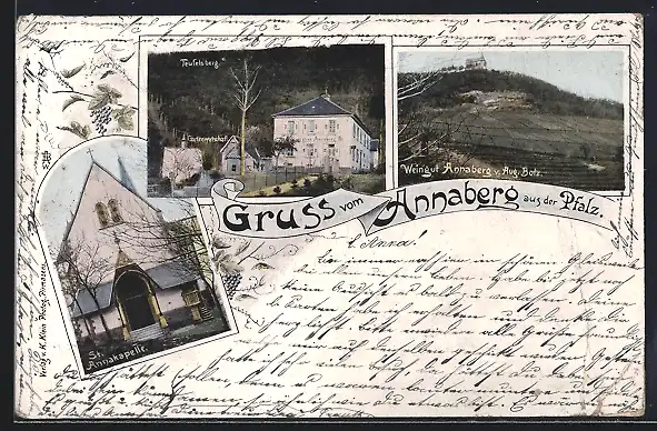 AK Annaberg / Burrweiler, Teufelsberg mit Gartenrestaurant, St. Annakapelle, Weingut v. Aug. Botz