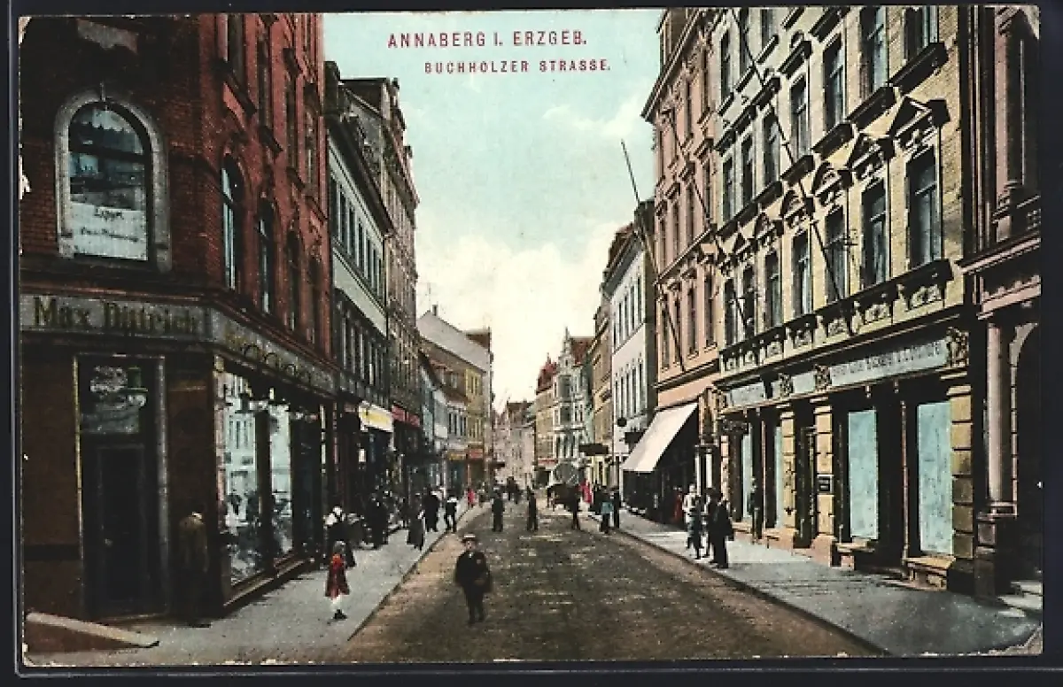 AK Annaberg i. Erzgeb., Buchholzer Strasse, Geschäft von Max Dittrich
