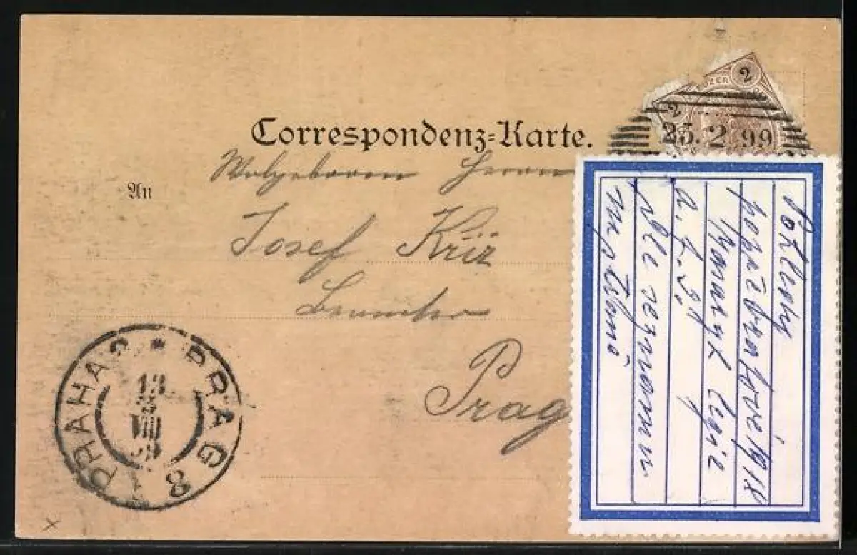 gelaufen 1899, rückseitig Klebe- und Papierreste, Stempelspur, guter Zustand