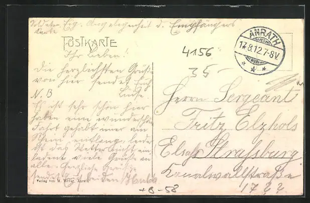 gelaufen 1912, Stempelspur, guter Zustand