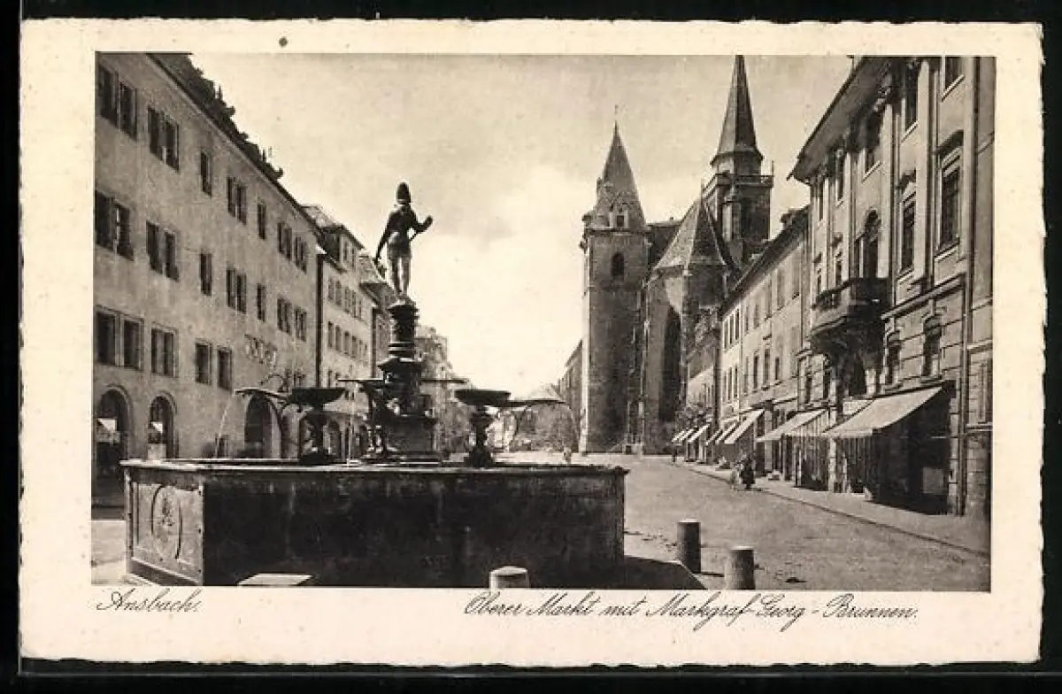 AK Ansbach, Oberer Markt mit Markgraf-Georg-Brunnen