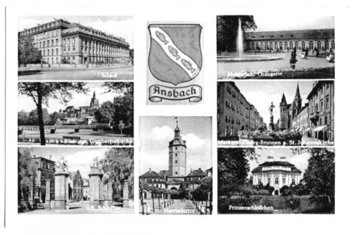 Ansichtskarte Ansbach sieben Abb. Erhaltung I-II ungelaufen, um 1955 Verlag: Fritz Lauterbach, Fürth i. Bay.