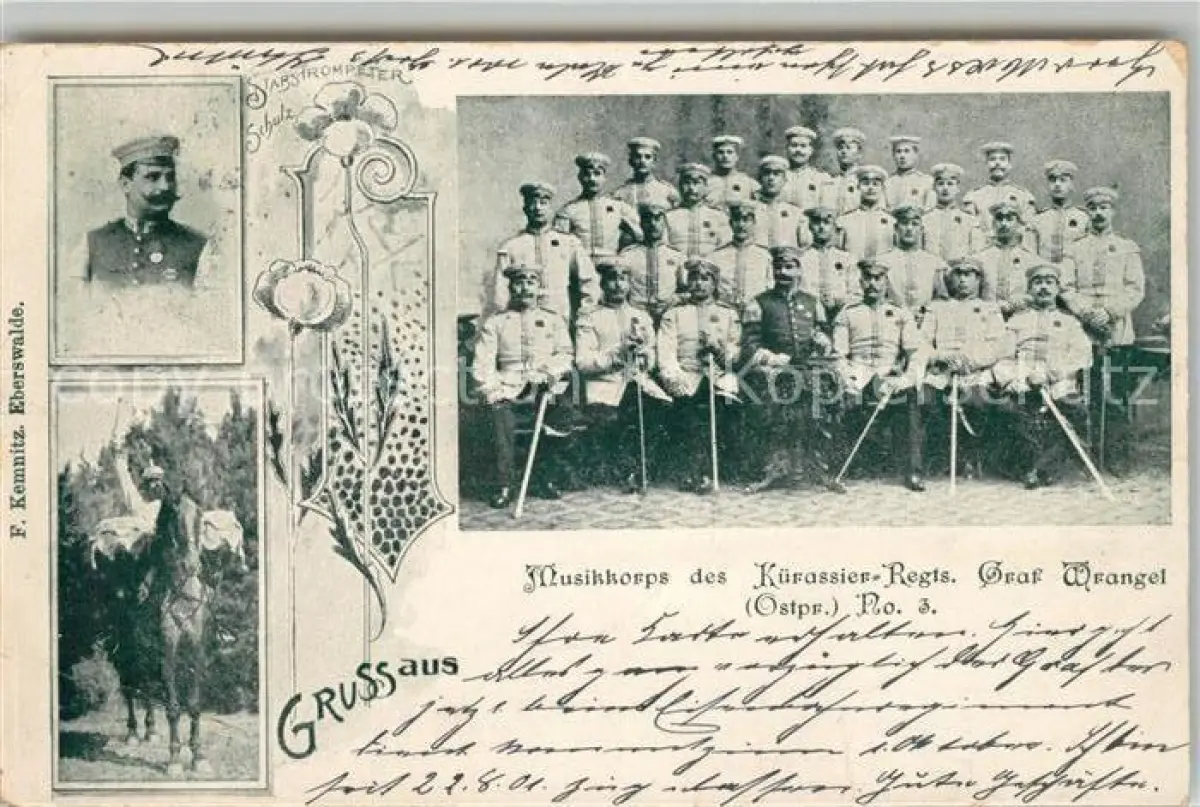 34096639 003 Regiment KueR Kuerassiere Stolp Pommern Slupsk PL Graf Wrangel Musikkorps postalisch gelaufen Erhaltung siehe scans [ChrisD19] old postcard Chri Katcode 11410