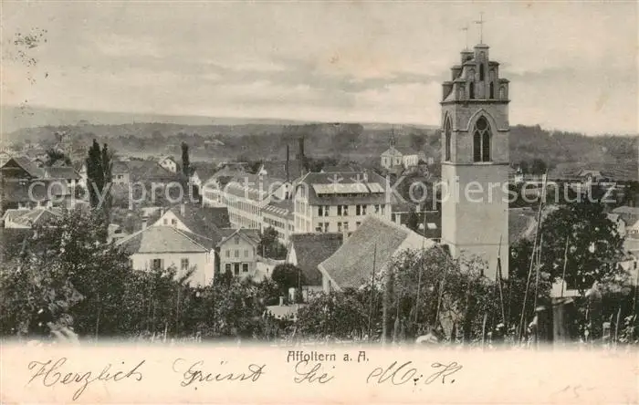 13798416 Affoltern_Albis_ZH Ansicht mit Kirche postalisch gelaufen 1909 Erhaltung siehe scans [FriedD77] [Frierer ]
