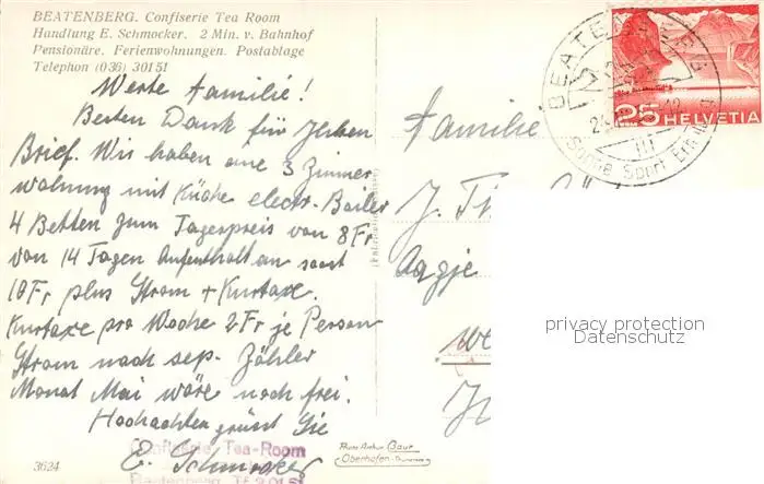 13798434 Beatenberg_Thunersee_BE Confiserie Tea Room postalisch gelaufen 1953 Erhaltung siehe scans [FriedD77] [Frierer ]