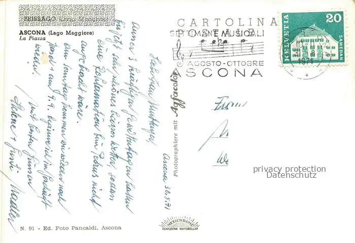 alte Postkarte 14012374 Ascona Lago Maggiore TI La Piazza Bootsanleger postalisch gelaufen Erhaltung siehe scans [FriedD77]