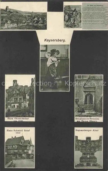 AK / Ansichtskarte 14013205 Kaysersberg Kaisersberg Alsace 68 Haut Rhin Gesamtansicht Der Buesser von Kaysersberg Renaissance Brunnen Altar Haus Schmied Brief Trachten