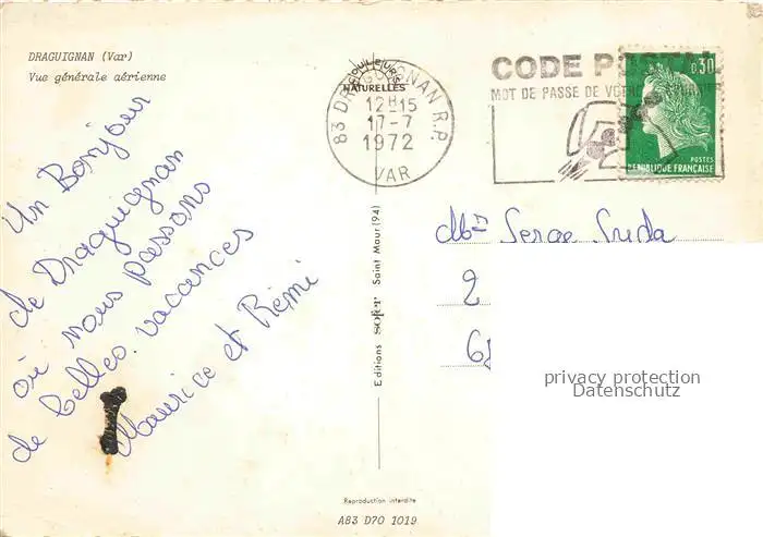 carte postale 14013516 Draguignan 83 Var Vue générale aérienne postalisch gelaufen Erhaltung siehe scans [FriedD77]