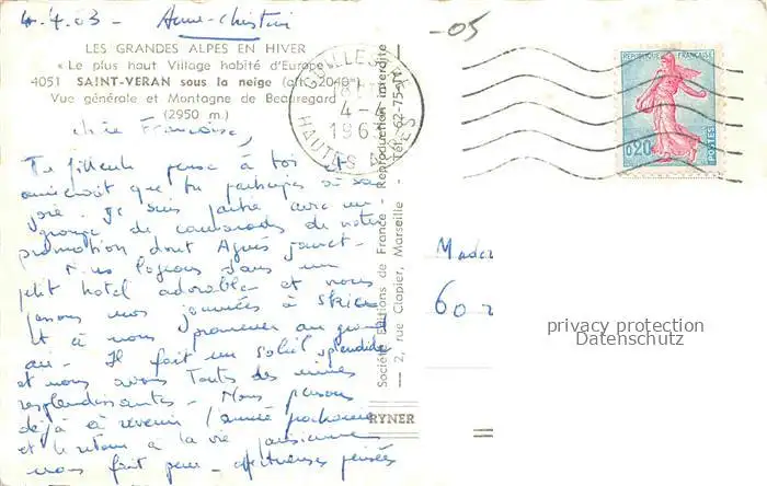 carte postale 14014065 Saint-Veran Briancon 05 Hautes-Alpes Vue générale des grandes Alpes en hiver Montagne de Beauregard postalisch gelaufen Erhaltung siehe scans [FriedD77]
