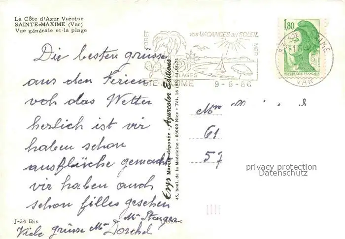 carte postale 14015190 Sainte-Maxime-sur-Mer 83 Vue générale et la plage des fleurs postalisch gelaufen Erhaltung siehe scans [FriedD77]