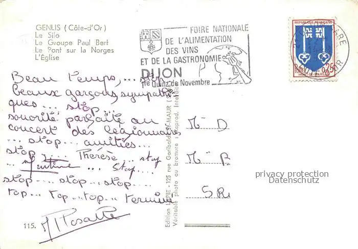 carte postale 14016049 Genlis Le Silo Le Groupe Paul Bert Le Pont sur la Norges L'Eglise postalisch gelaufen Erhaltung siehe scans [WerneD78]