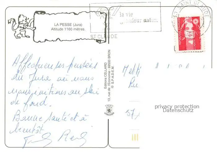 carte postale 14016538 La Pesse Winterpanorama Ortsansicht mit Kirche Hundeschlitten postalisch gelaufen Erhaltung siehe scans [FriedD77]