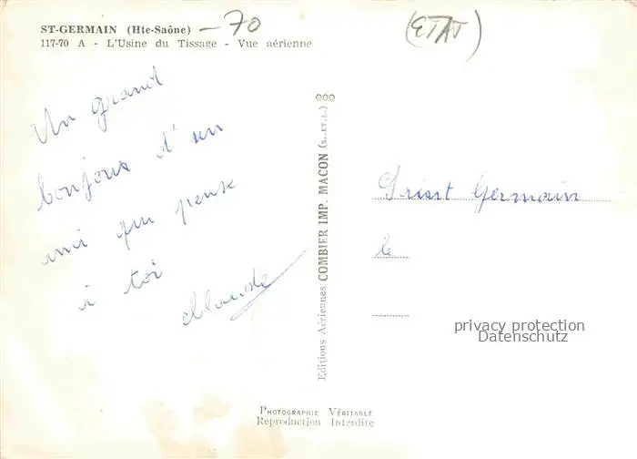 14018969 St-Germain Lure 70 Haute-Saone Usine du Tissage vue aérienne postalisch nicht gelaufen Fliegeraufnahme Erhaltung siehe scans [FriedD77]